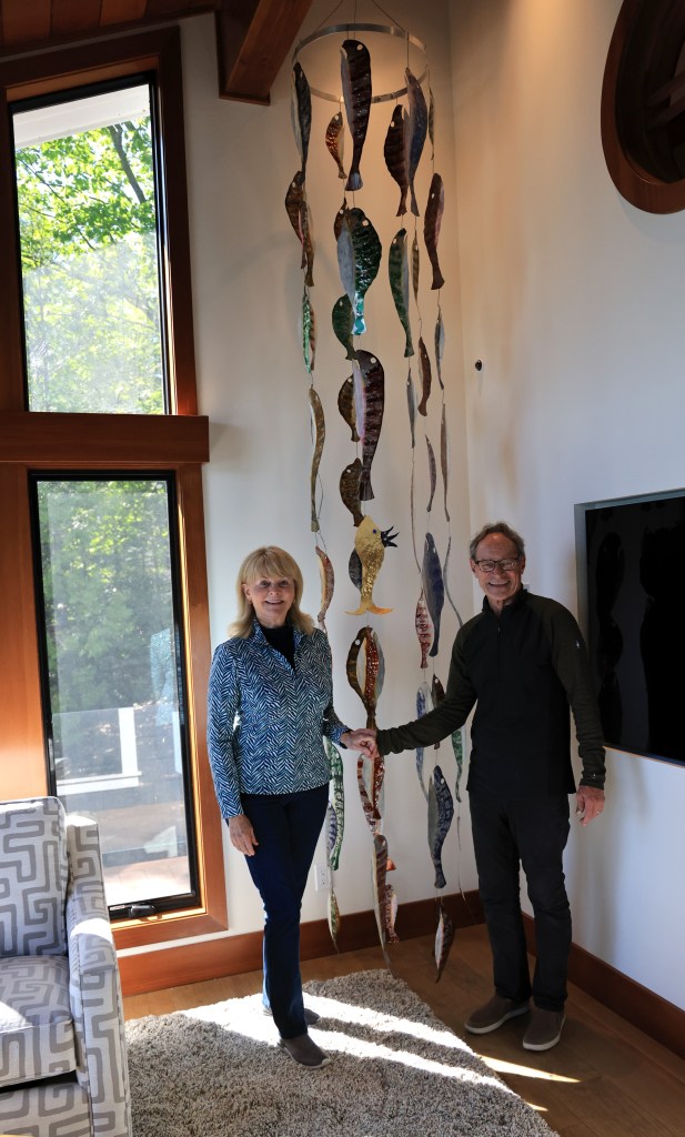 The turtle’s carapace, or shell, is securely attached to a welded stainless steel armature which is in turn attached to the granite rock outcropping. The sculpture is 7 feet 6 inch in length from head to the tip of the tail and weighs 105 lbs. It took two years to complete.