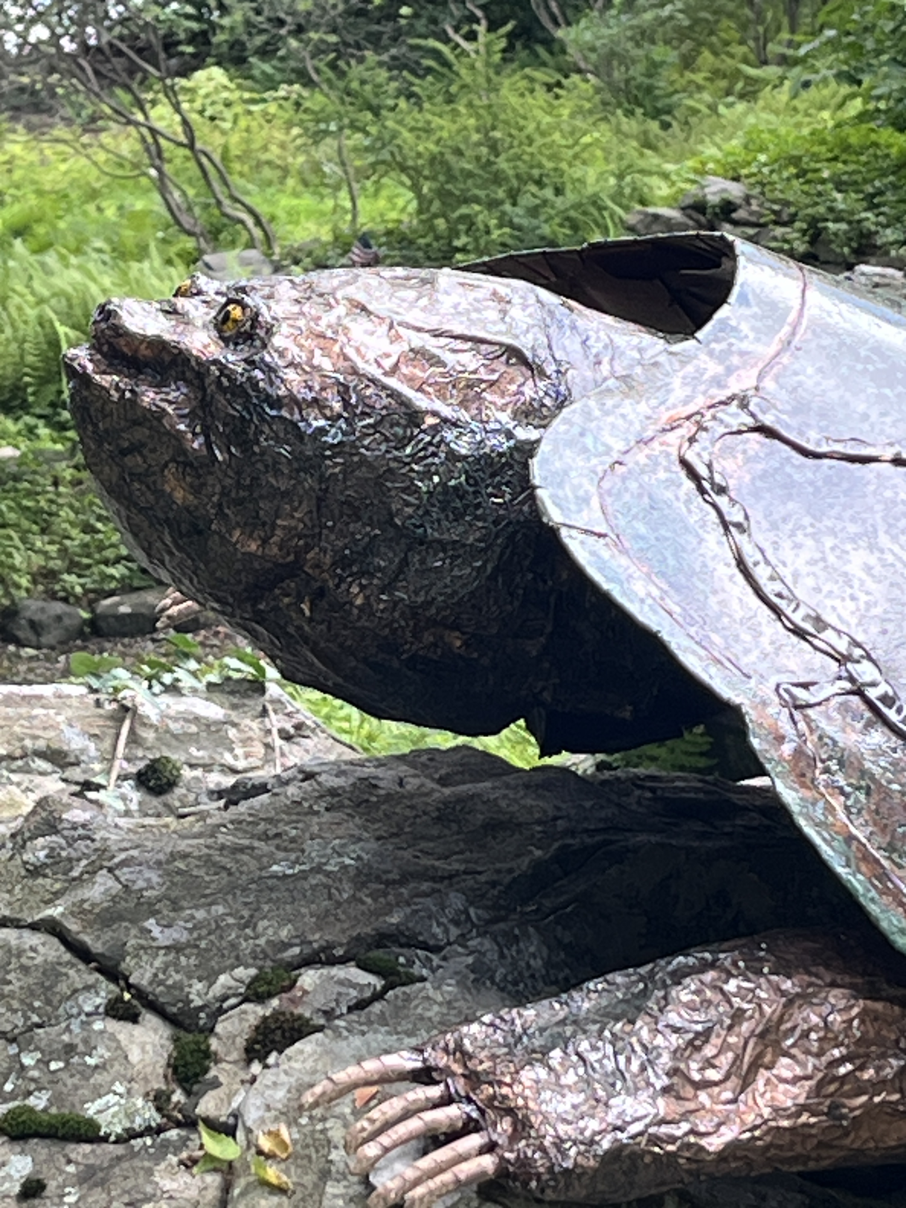 TT is a giant copper snapping turtle installed in a private art collection 45 minutes north of New York City on a private lake called China Pond. TT is by all measures my biggest sculpture installed to date. Chelydra [pronounced kěl’-ǐ-drǎ] Serpentina is the common snapping turtle which just happens to be designated the State Reptile of New York.