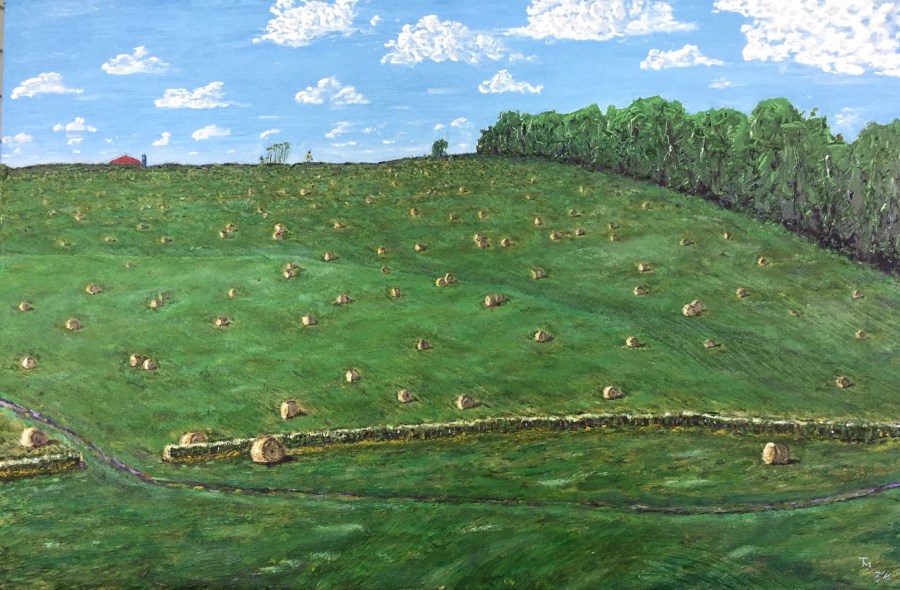 Hay Bales on Lake Grove (oil on canvas)